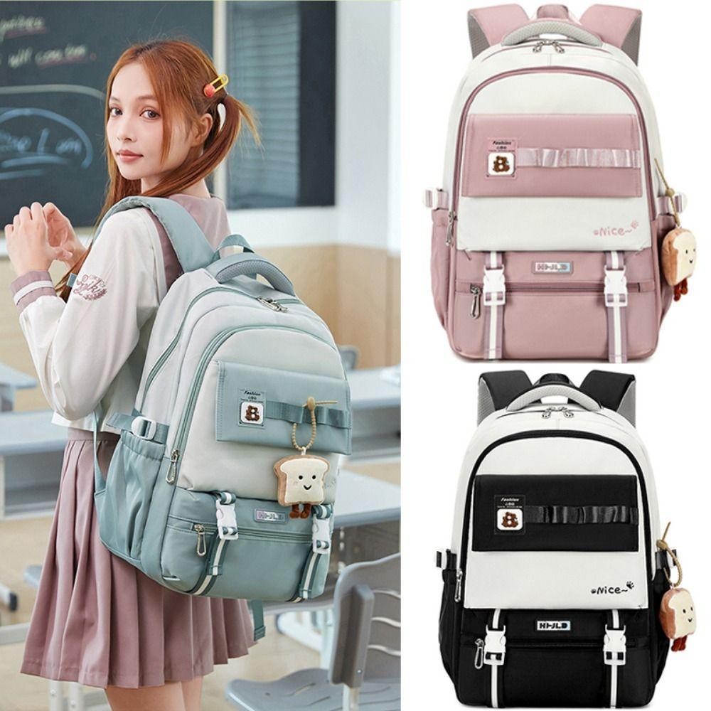 กระเป๋าเป้สะพายหลัง,กันน้ําพร้อมจี้กระเป๋านักเรียน,ระบายอากาศความจุขนาดใหญ่น้ําหนักเบา คละสี 3/ชิ้น ลดราคาพิเศษ